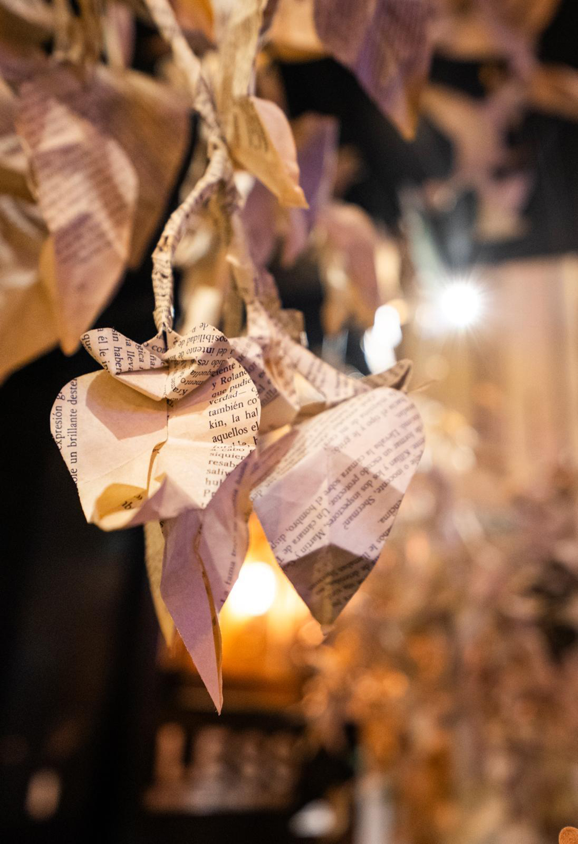 Bajo el concepto “A Christmas Tale in Paper”, Rúa reinterpreta la estética navideña desde una mirada sostenible y emocional, construyendo universos tridimensionales a partir de materiales humildes: pliegues, recortes y texturas que cobran vida bajo la luz cálida del Bless. Cada instalación invita al visitante a adentrarse en un relato sensorial —entre sombras, reflejos y figuras etéreas— que rinde homenaje al espíritu de “Cuento de Navidad”, pero con la sensibilidad contemporánea que caracteriza a la artista.