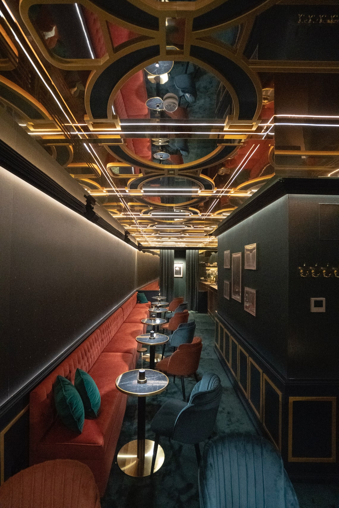 El diseño recorre distintos ámbitos varios salones vip hasta las áreas de bar y tránsito, tejiendo una narrativa visual que reinterpreta la ornamentación original a través de la luz, la textura y la geometría.
