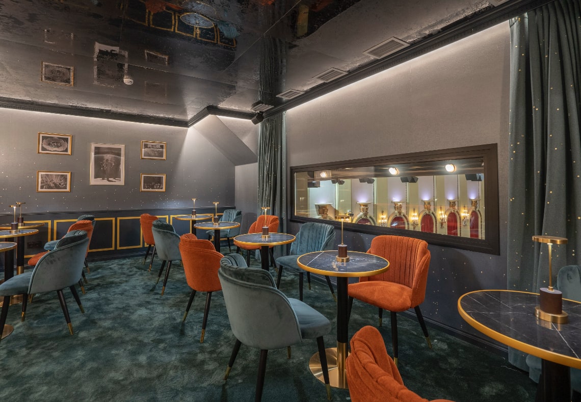 El APOLO presenta una nueva decoración: una fusión entre el esplendor Art Déco, los ecos pseudobarrocos y la sensibilidad escénica contemporánea.