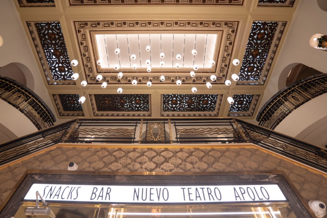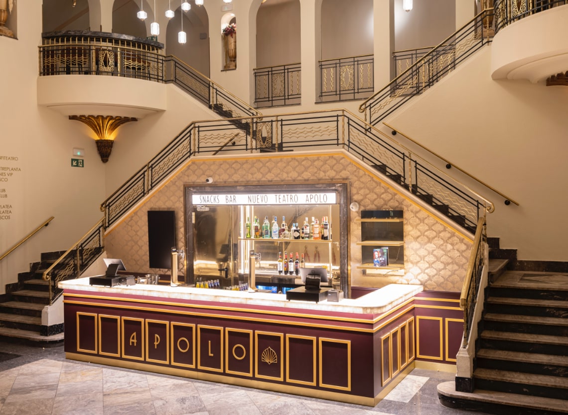 El APOLO presenta una nueva decoración: una fusión entre el esplendor Art Déco, los ecos pseudobarrocos y la sensibilidad escénica contemporánea.