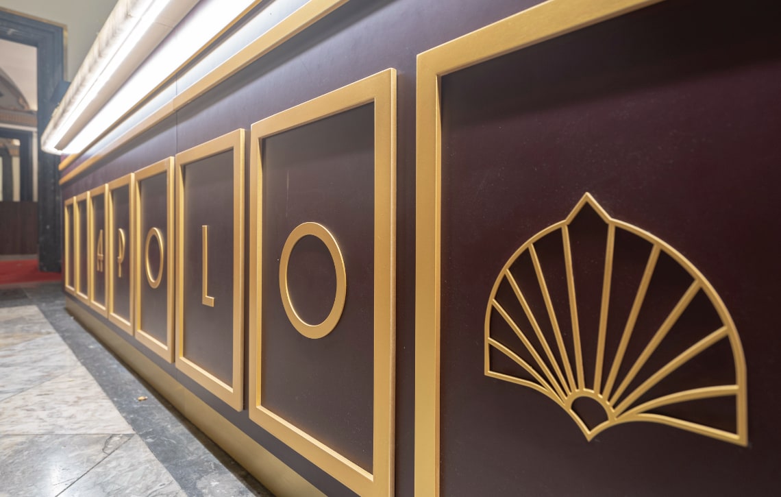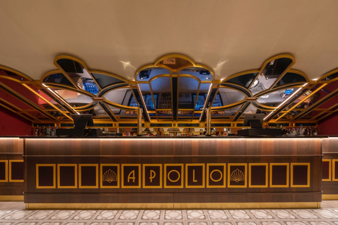El APOLO presenta una nueva decoración: una fusión entre el esplendor Art Déco, los ecos pseudobarrocos y la sensibilidad escénica contemporánea.