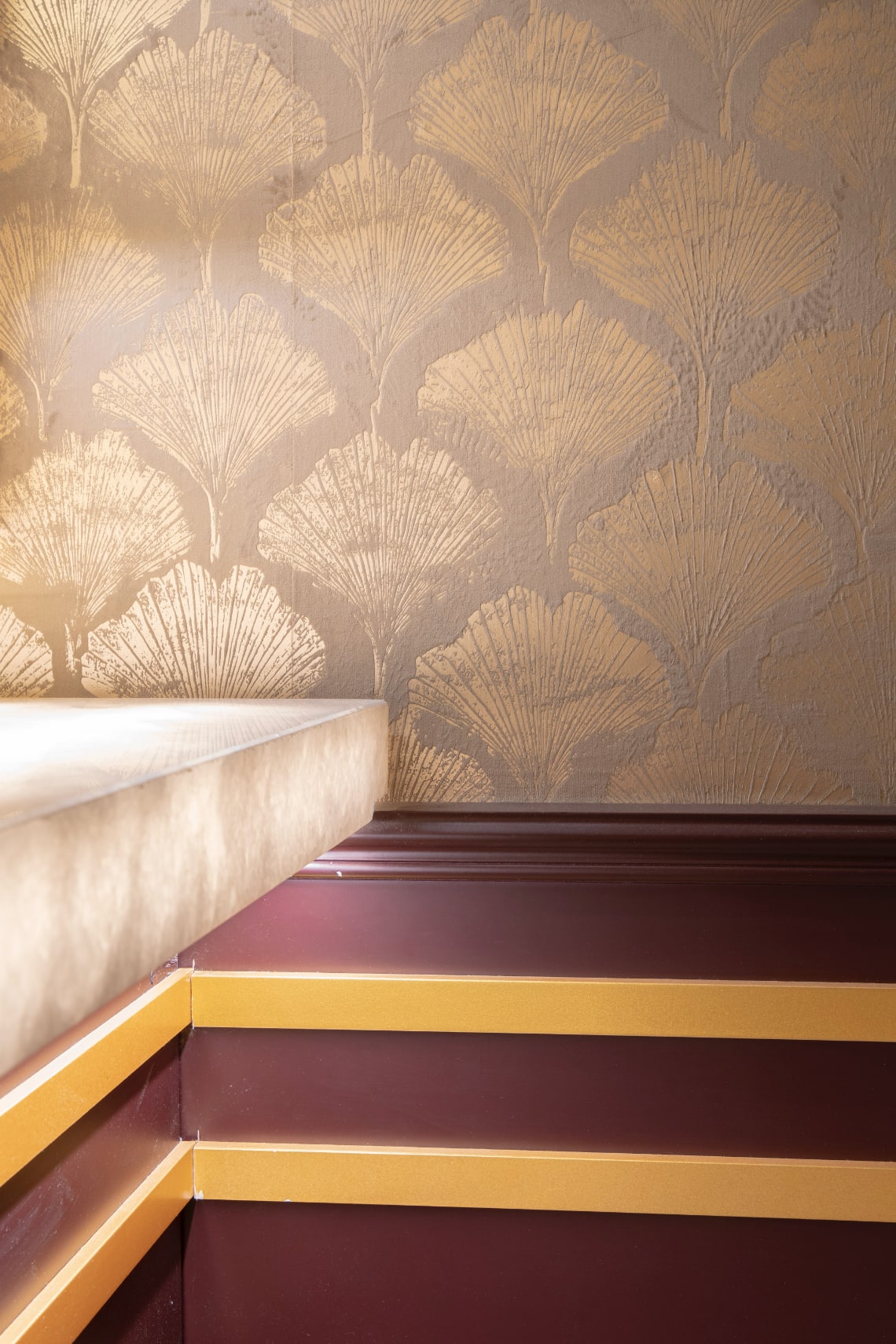 El diseño recorre distintos ámbitos varios salones vip hasta las áreas de bar y tránsito, tejiendo una narrativa visual que reinterpreta la ornamentación original a través de la luz, la textura y la geometría.